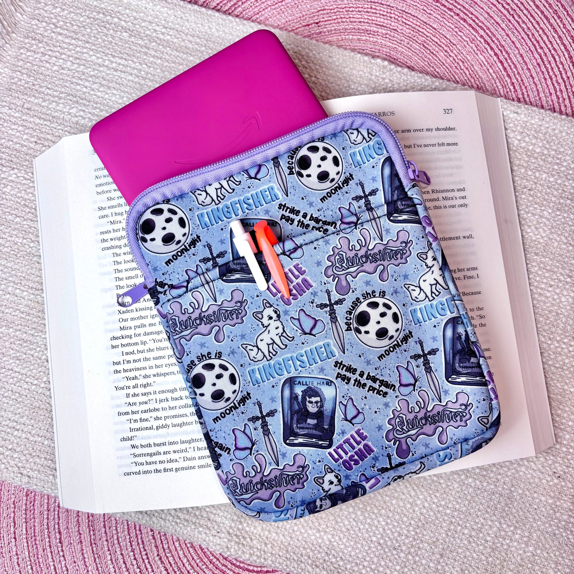 Protect your Kindle in style with this waterproof sleeve, designed to keep your device safe from spills, splashes, and everyday wear. Each sleeve is crafted with a secure zipper closure and a handy front pocket, perfect for storing chargers, pens, sticky notes, or small accessories.
